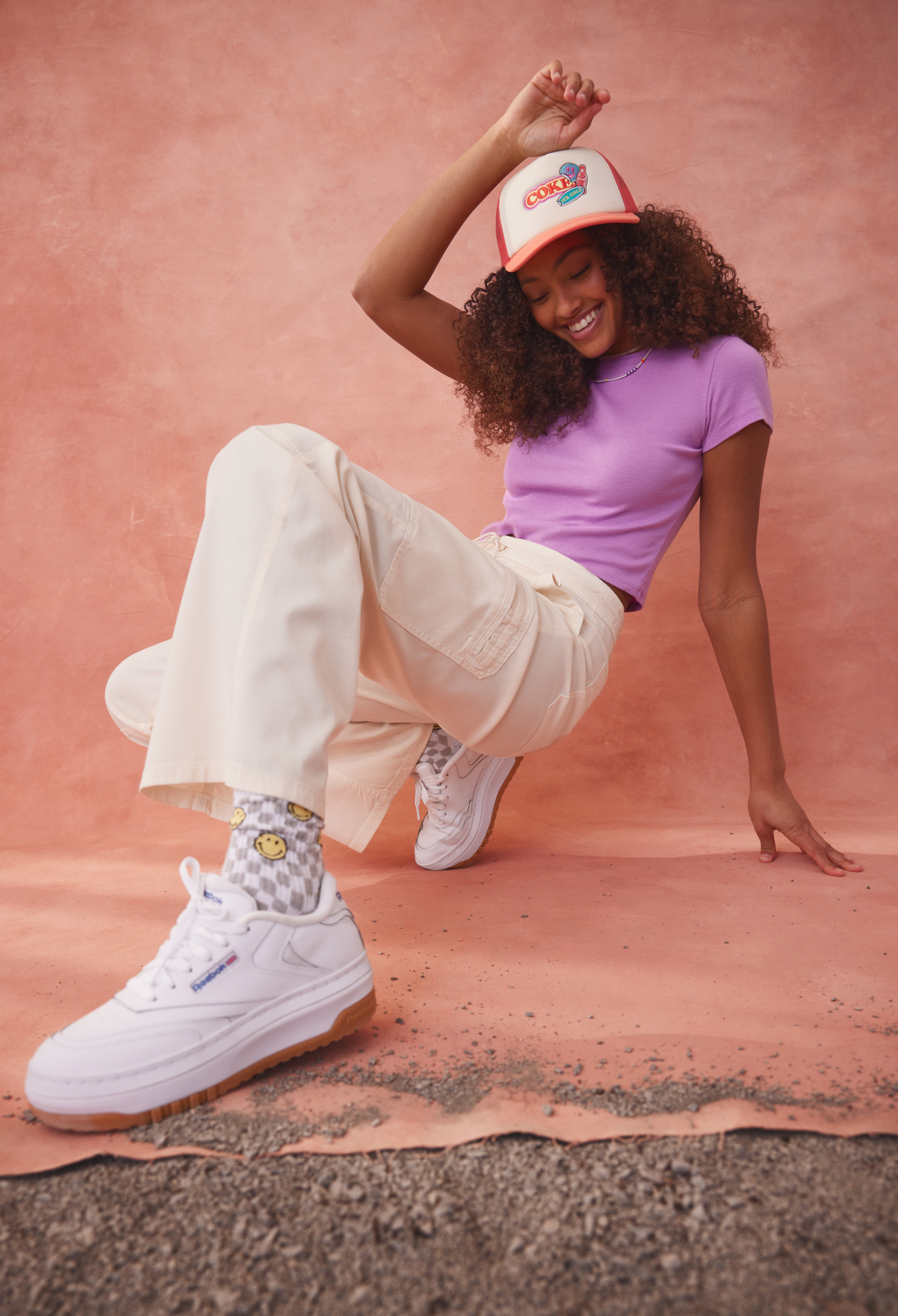Bright this way, we’ve got your new favorite look for summer: straight-leg cargo pants that are made for warmer days with a lightweight, easy-breezy fit and hit of color (if you pick a bright hue!). Plus, with on-trend cargo pockets and carpenter detailing, this ’fit is giving trend on trend on trend.